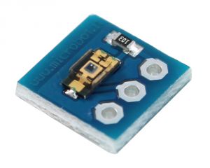 This ambient light sensor carries the TEMT6000 phototransistor. The phototransistor is connected to a pull-down resistor to form a voltage divider that produces an analog voltage output between 0V and +5V as a function of the light detected in the visible spectrum. Lower output voltage is an indication of less light detected.